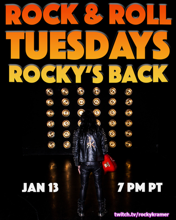 Watch Rocky Kramer’s Rock & Roll Tuesdays “Rocky’s Back” on January 13th, 2026, at 7 PM PT on Twitch here:
